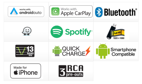 Apple CarPlay y AndroidAuto. Disfrute del contenido de Spotify y utilice Waze. Reciba llamadas de manera segura via Bluetooth con memoria para hasta 5 teléfonos.