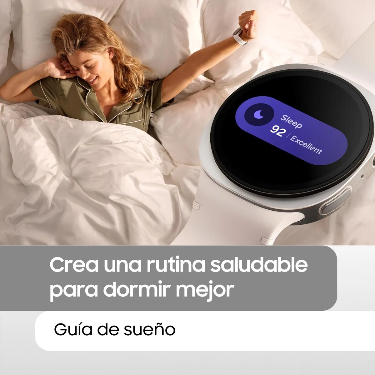 El apartado de salud y bienestar es uno de sus puntos fuertes. Incluye sensores avanzados para el monitoreo de la frecuencia cardíaca, el sueño, la actividad física diaria y otros indicadores clave de salud. Todos los datos se sincronizan con Samsung Health, permitiendo un seguimiento detallado y recomendaciones personalizadas.