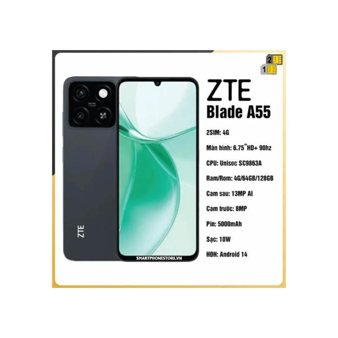 El ZTE Blade A55 4GB/128GB es una versión del smartphone de gama de entrada de ZTE que ofrece un equilibrio entre rendimiento y almacenamiento a un precio accesible. Es ideal para quienes buscan un dispositivo funcional para tareas cotidianas como navegar por internet, usar redes sociales y consumir contenido multimedia.
